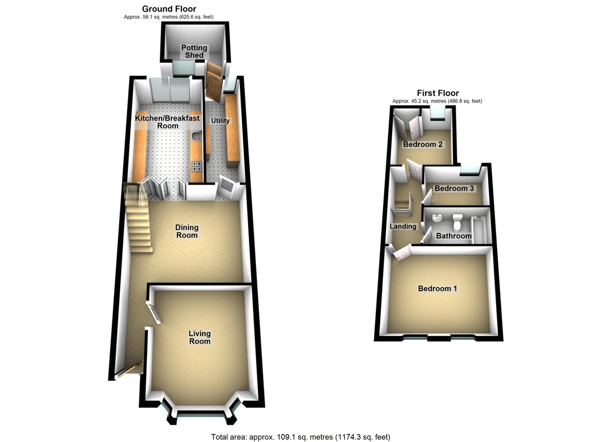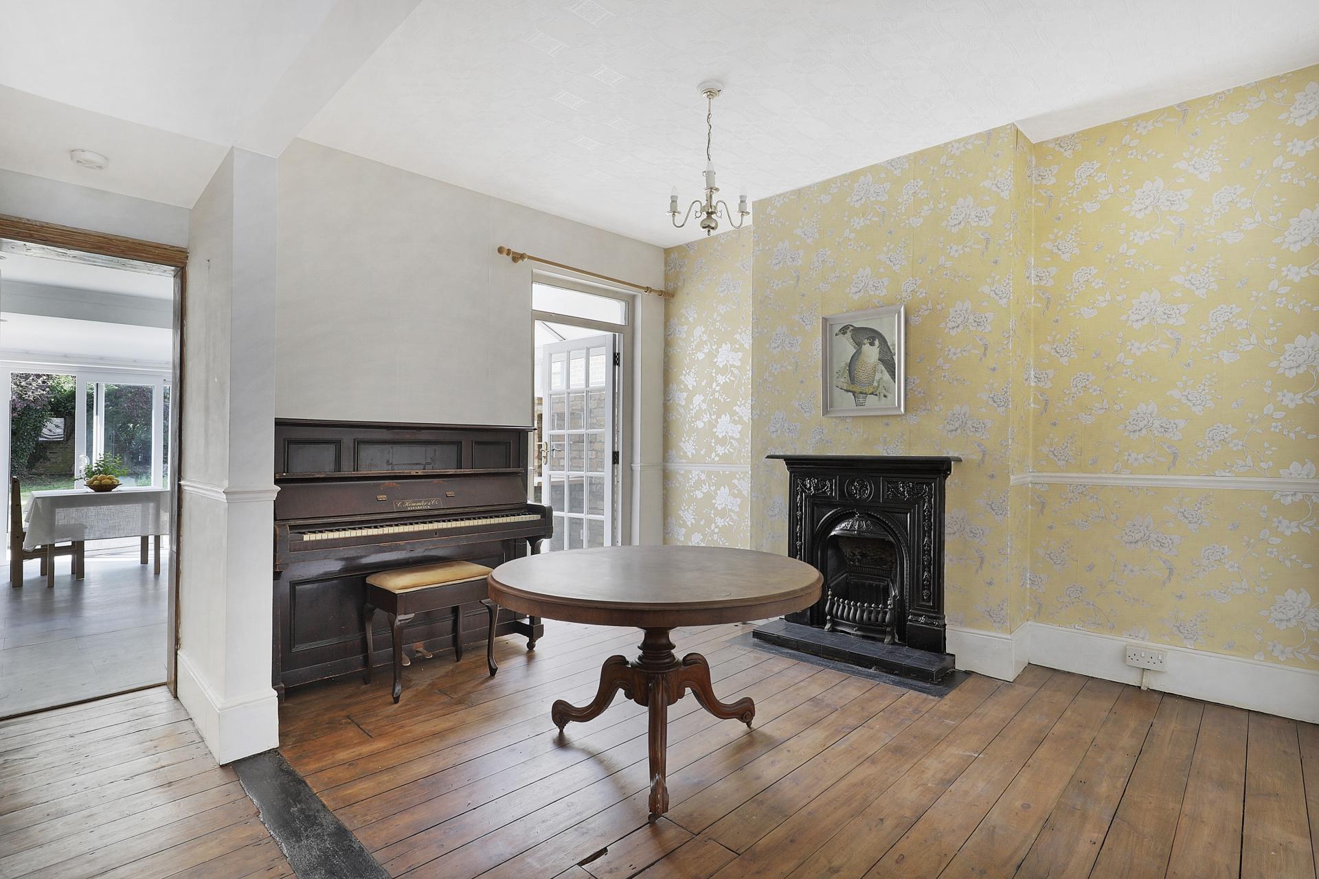 On the first floor this comfortable home offers three bedrooms, two doubles plus a good-sized single, together with the modern family bathroom. To the ground floor an elegant entrance hall leads to the two reception rooms, each displaying an attractive fireplace. The rear reception room has access to a large kitchen / breakfast room with glazed doors offering views over the secluded rear garden. There is also a lean-to utility room with potential to incorporate a possible ground floor shower room.