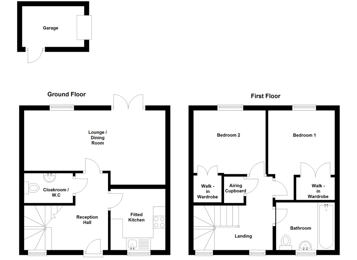 GARAGE Located to the rear of the property. Parking space to the front of the garage. Access door from garage to the rear garden.