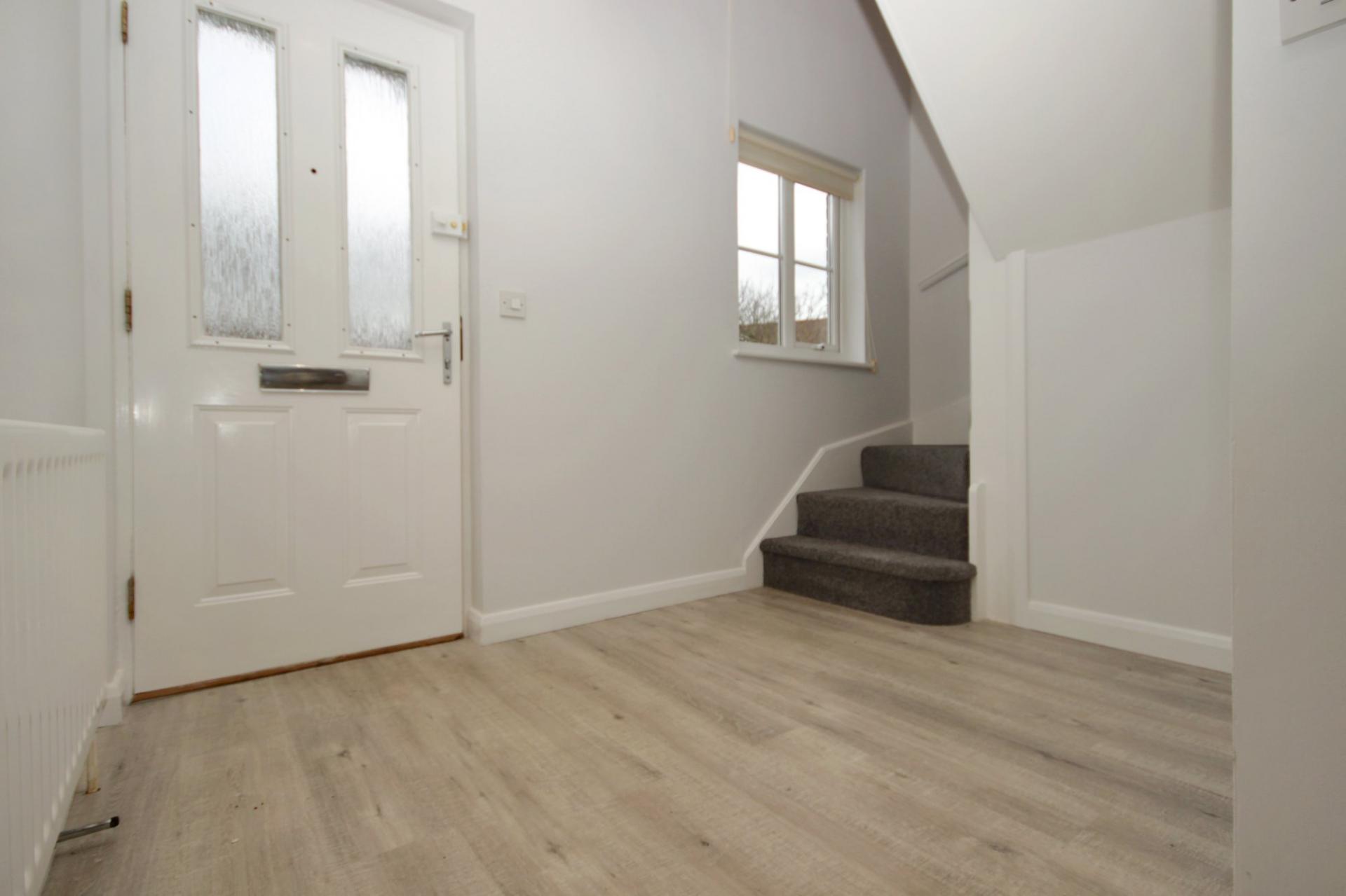 The interior has recently been redecorated in a neutral colour theme to the walls and gloss white painted woodwork. Laminated floor coverings complement the tasteful interior design with carpeting fitted to both bedrooms, as well as the turning staircase and landing. The ground floor hall and lounge/diner has stylish, quality laminate flooring in saw cut oak grey from the Quick Step Impressive Ultra range.